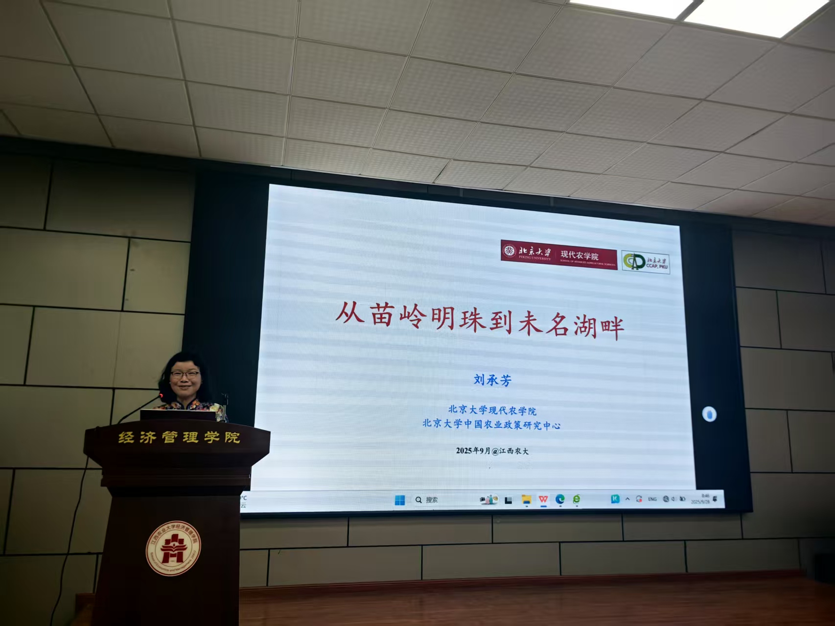 9月28日上午,北京大学博雅特聘教授、北京大学现代农学院副院长、中国农业政策研究中心副主任刘承芳在经世楼207会议报告厅作专题学术报告。乡村振兴战略研究院执行院长翁贞林教授、马文教授以及经济管理学院院长李剑富教授、部分老师与200余名硕博研究生现场共同聆听此次学术报告会。农林经济管理学科负责人、“三农”问题研究中心主任廖文梅教授主持报告会。